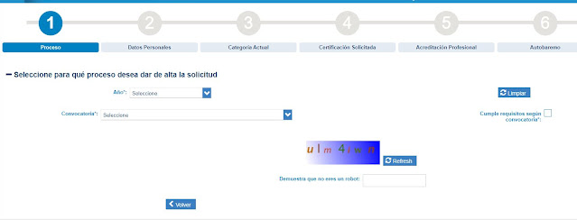 En el paso 4: Indicar la categoría que solicito la antigüedad en la categoría a que opto y el nivel y antigüedad que tengo reconocido en la actualidad en la categoría solicitada o en su caso en la categoría desde la que accedí en promoción interna.